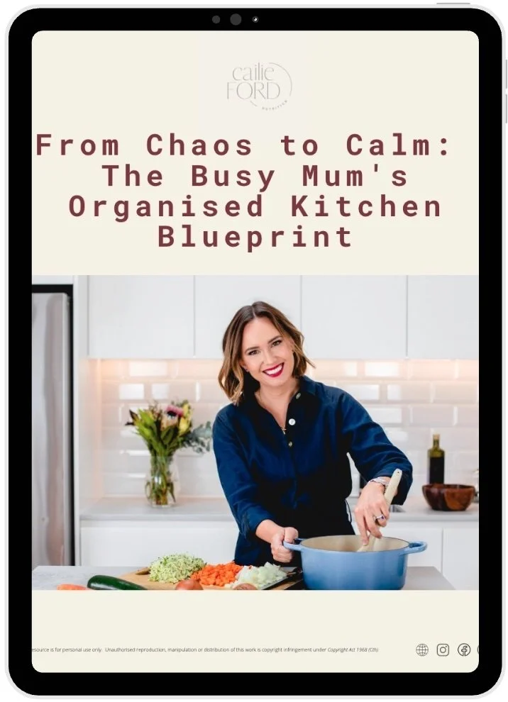 This free guide gives you a simple, no-overwhelm system to set up your kitchen so that eating well becomes the easy default - not something that requires extra willpower at the end of an already exhausting day.